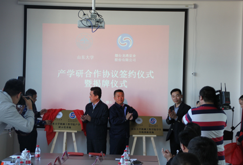 10月12日下午,山東大學(xué)機械工程學(xué)院與煙臺龍港泵業(yè)股份有限公司簽訂產(chǎn)學(xué)研合作協(xié)議,同時(shí)為共建企業(yè)研究院和為產(chǎn)學(xué)研示范基地、學(xué)生實(shí)踐創(chuàng )新基地揭牌。煙臺市委常委、統戰部部長(cháng)于永信,高新區工委副書(shū)記劉來(lái)英,山東大學(xué)機械工程學(xué)院黨委副書(shū)記呂偉、副院長(cháng)宋清華、陳頌英教授,煙臺龍港泵業(yè)股份有限公司董事長(cháng)陳培倫等出席。