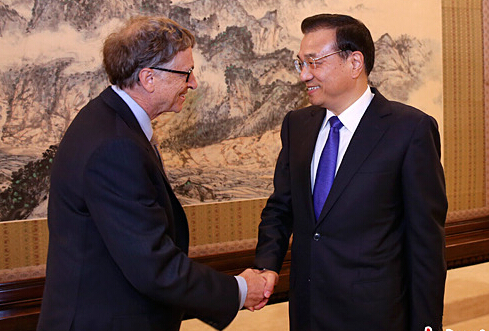 中國國務(wù)院總理李克強12日下午在中南海紫光閣會(huì )見(jiàn)來(lái)華訪(fǎng)問(wèn)的比爾˙蓋茨。